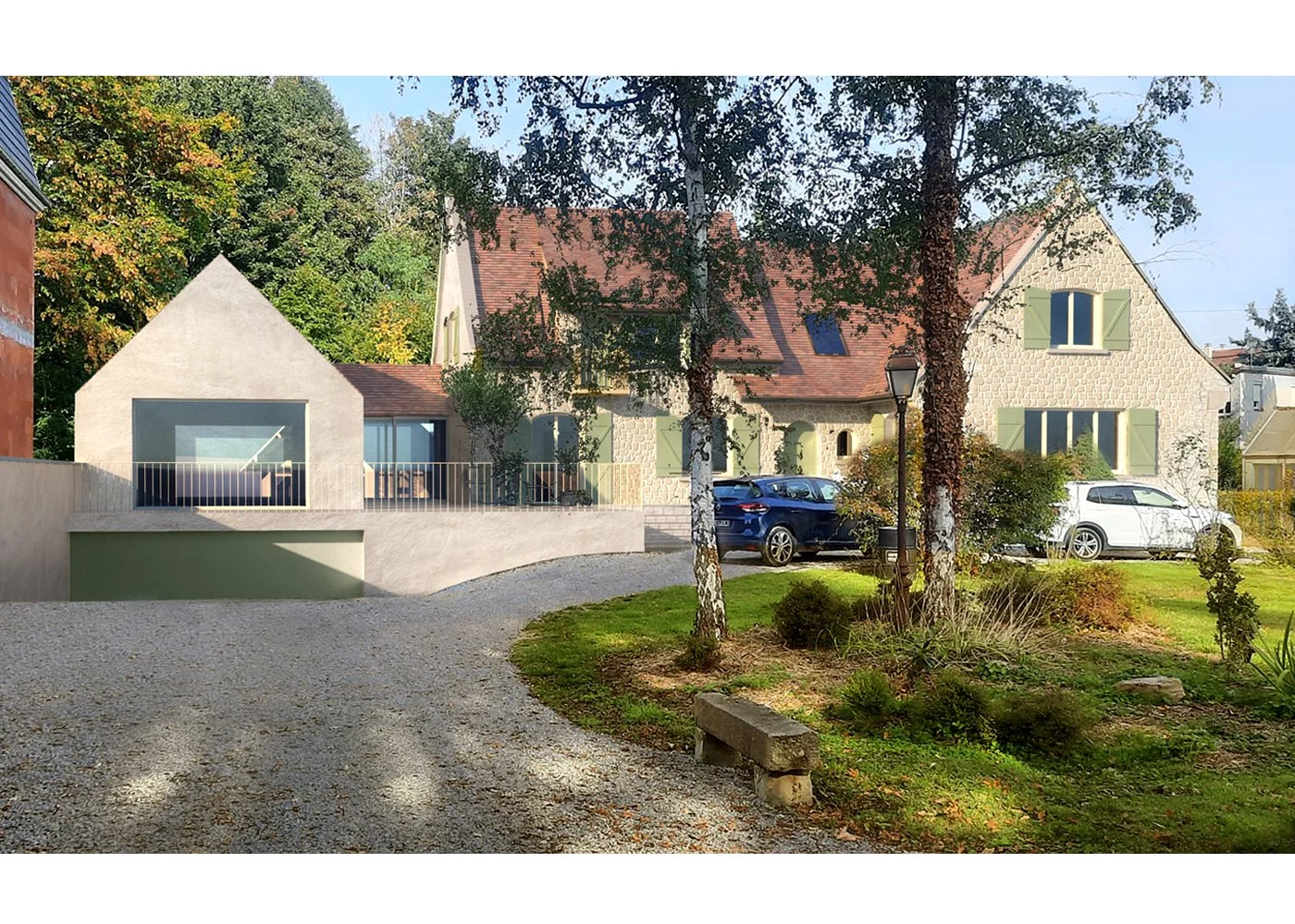 Le projet situé à Luzarches commune du Val d’Oise, consiste à concevoir une extension attenante à une maison individuelle intégrant une piscine intérieure et un parking en sous-sol. Le bâti existant, construit dans les années 1950 en pierre meulière, présente une typologie en L, avec une articulation volumétrique formée de trois blocs distincts. La composition spatiale du bâtiment permet l'implantation d'un pavillon en limite ouest.