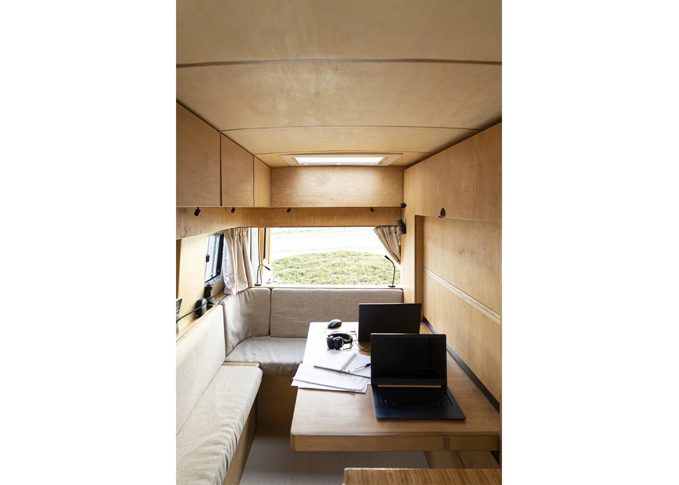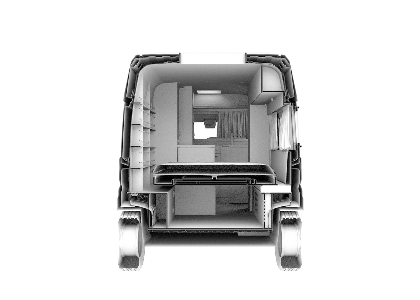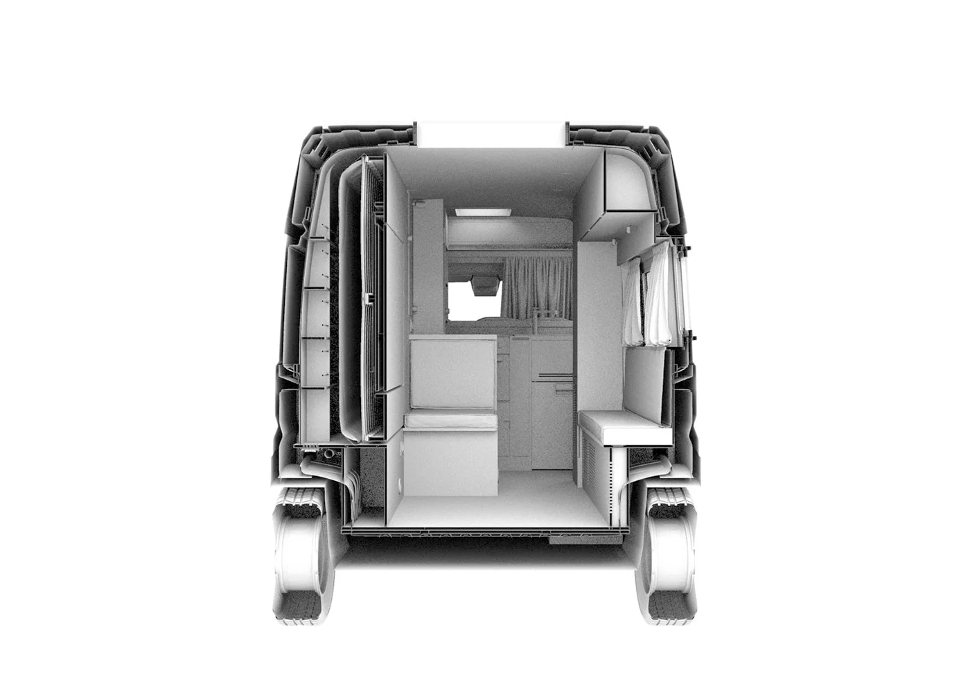 Conception d’un «bureau nomade» entièrement équipé et autonome en énergie. Entre véhicule utilitaire et van aménagé, l’objectif visait à concevoir un bureau mobile pour 2 personnes, permettant le travail nomade en autonomie sur une durée d'une semaine à toute période de l'année.