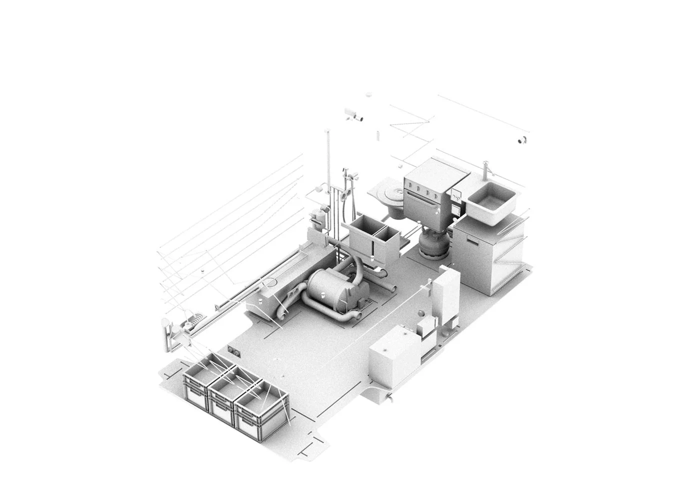 En phase d’étude, un relevé 3D par scanner laser du véhicule a été réalisé, permettant de reproduire précisément en CAO l’intégralité de la carrosserie et d’exploiter / optimiser les moindres aspérités du volume disponible.