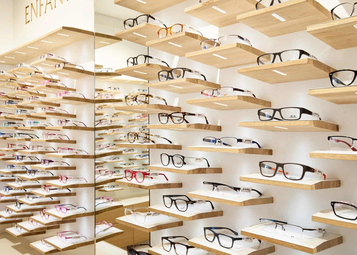 L'ensemble des mobiliers et supports de présentation ont également été réalisés sur-mesure afin de pouvoir répondre au mieux aux contraintes fonctionnelles et techniques du métier d'opticien; renouvellement et saisonnalité des produits, gestion des stocks en boutique, présentation et valorisation des verres teintés, sécurisation des produits par l'intégration d'antivols sur les tablettes individuelles, etc.