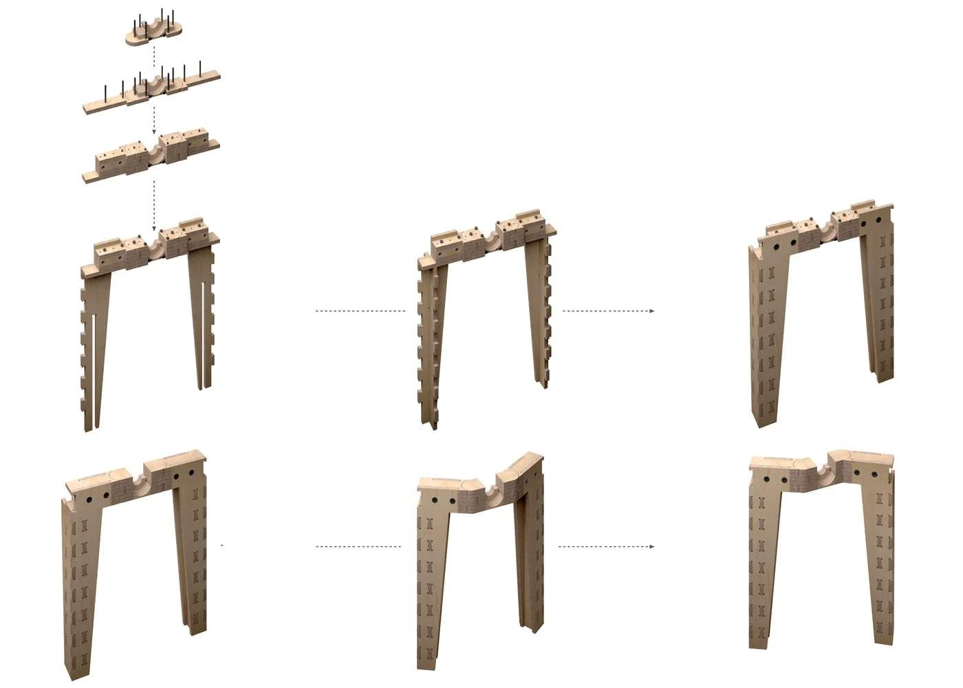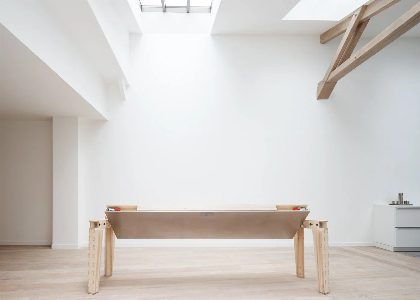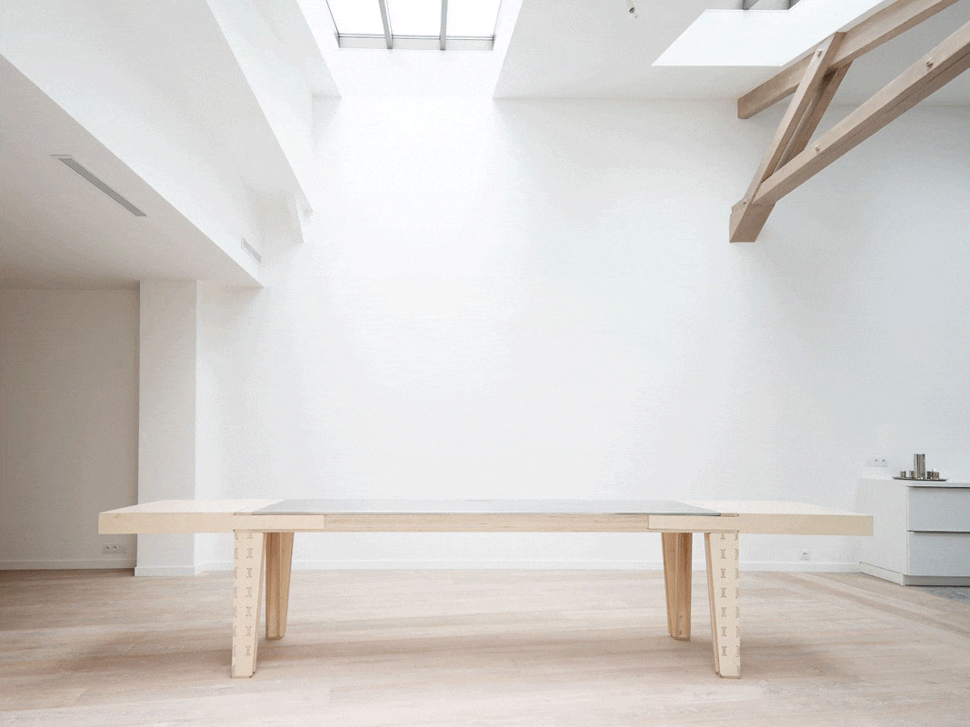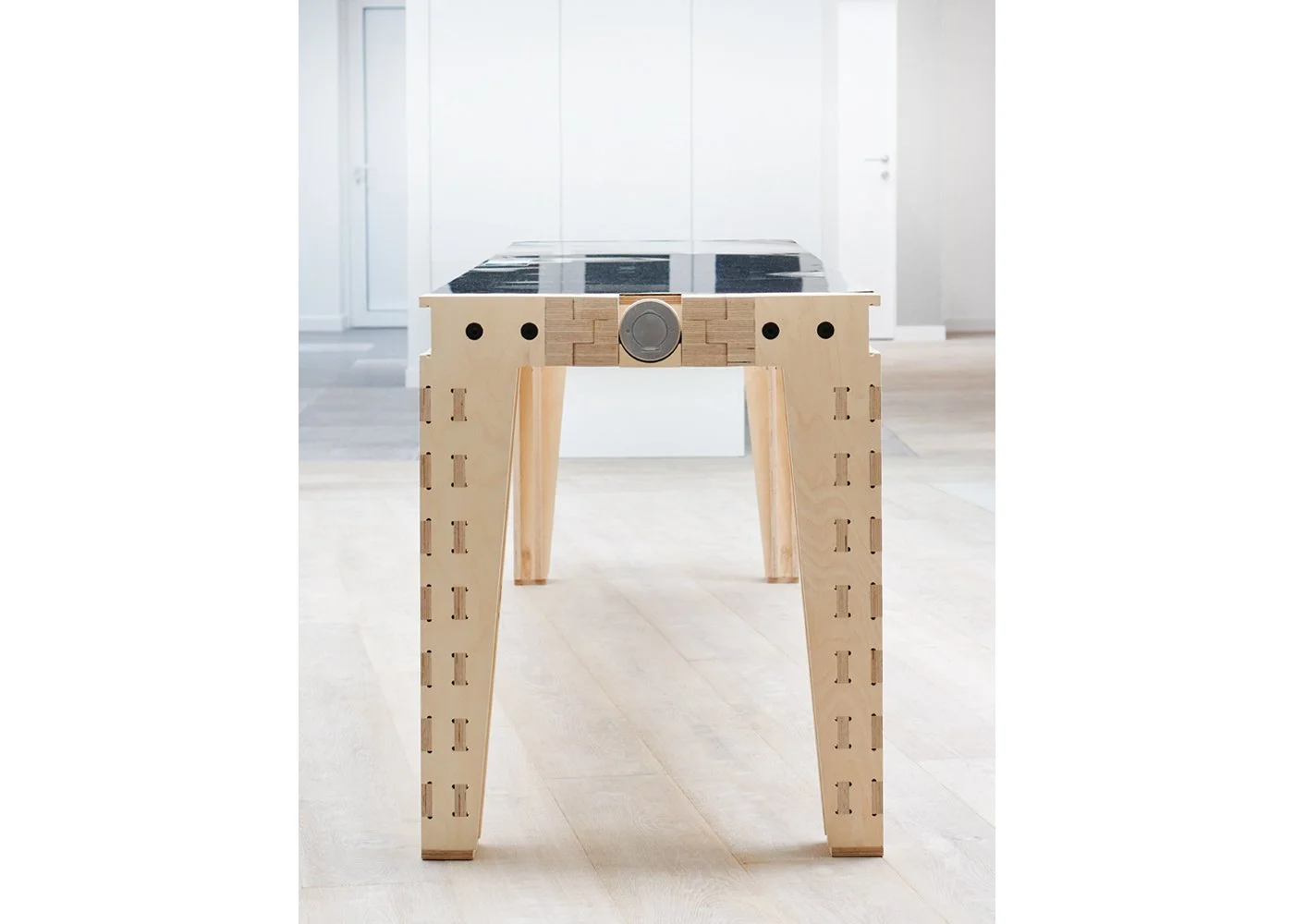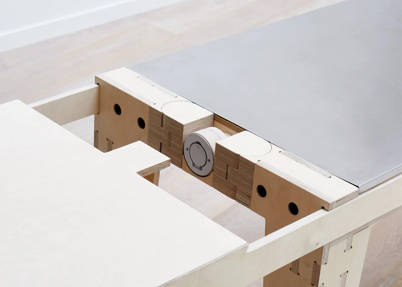 Dessinée et développée dans le but d'être usinée à l'aide d'une fraiseuse CNC 3 axes, le mobilier a été conçu de manière à répondre à plusieurs usages: un plateau de travail/plan de découpe pouvant être utilisé lors de cours, ateliers culinaires ainsi qu' une table de repas/travail pouvant être utilisée par l’ensemble des usagers du tiers lieu.