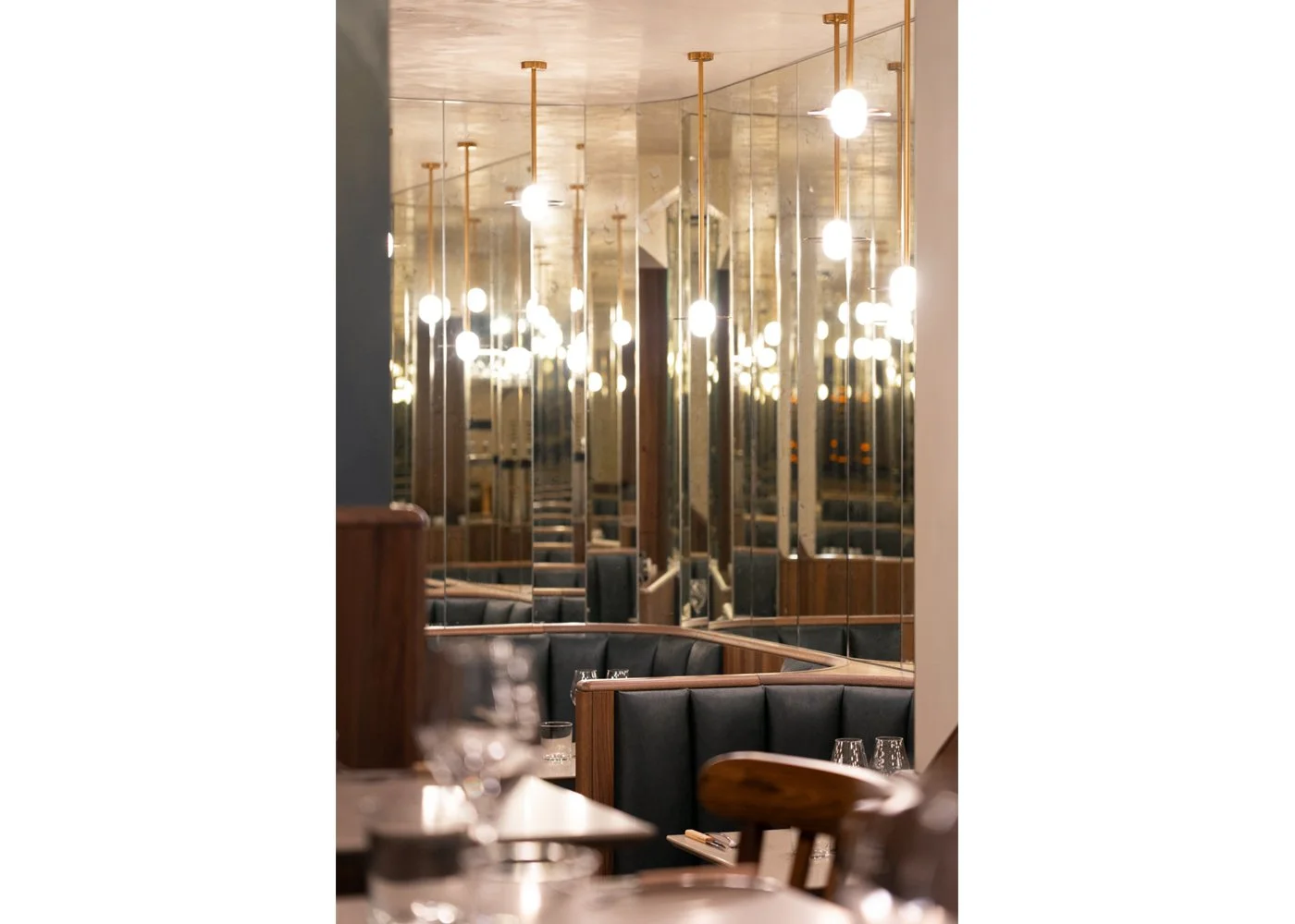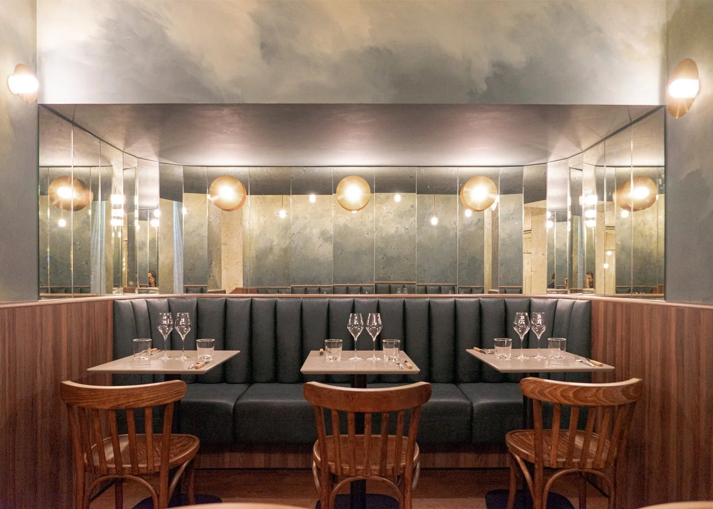 Espace tout en longueur, la pizzeria se déploie sur trois salles en enfilade. Entre jeux de miroirs, banquettes filantes et mobiliers sur-mesure, dès l'entrée du restaurant, on retrouve cette atmosphère typique et chaleureuse d'un bistrot parisien.