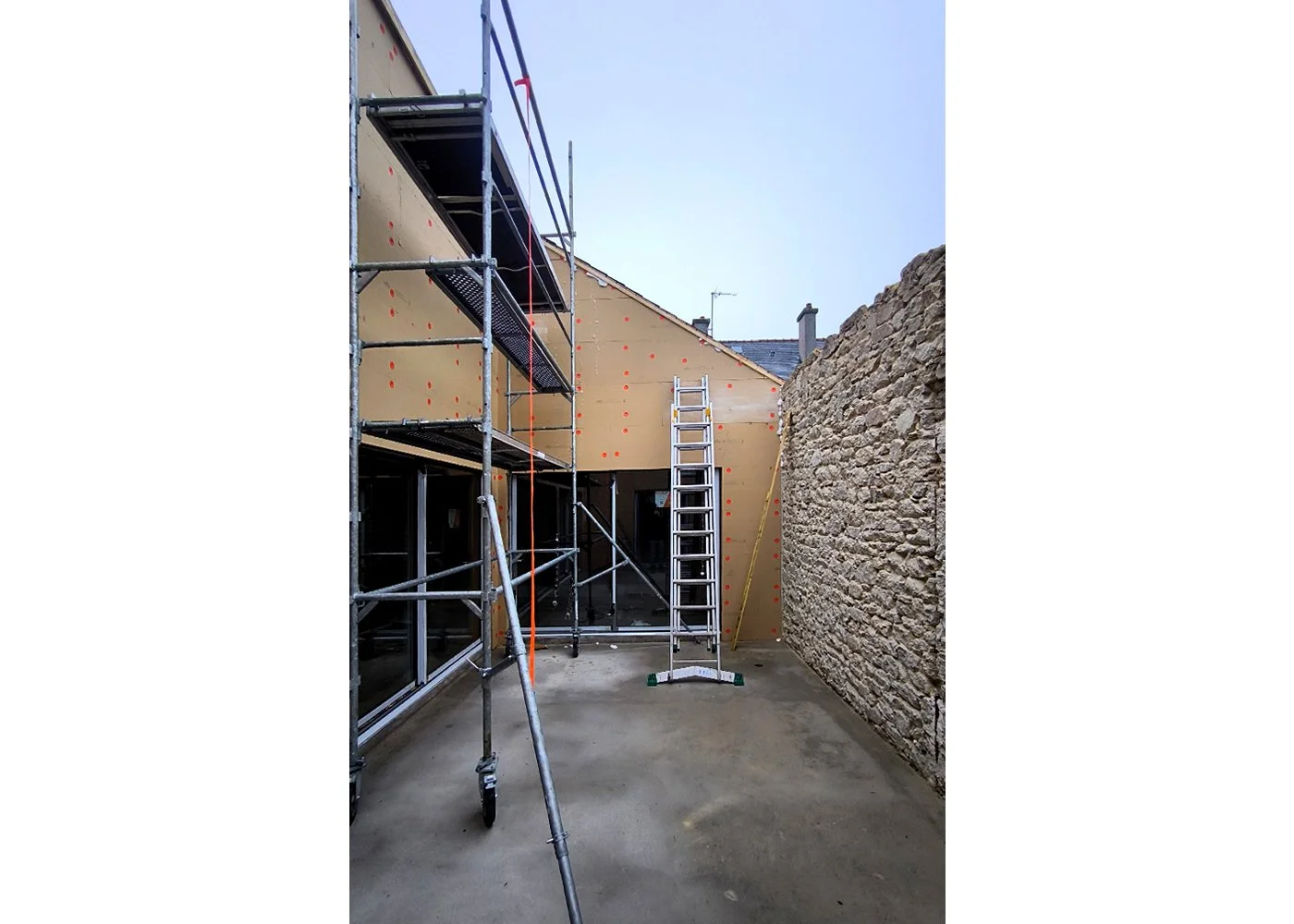 Cette ancienne école située aux abords du centre ville de Quimper ne bénéficiait d’ouvertures que sur son flanc Nord. Le bâtiment en R+1 de 8 mètres de large et dans une orientation Nord-Sud a entièrement été repensé dans le cadre de sa réhabilitation en logements: 2 appartements de type T4 en R+1.