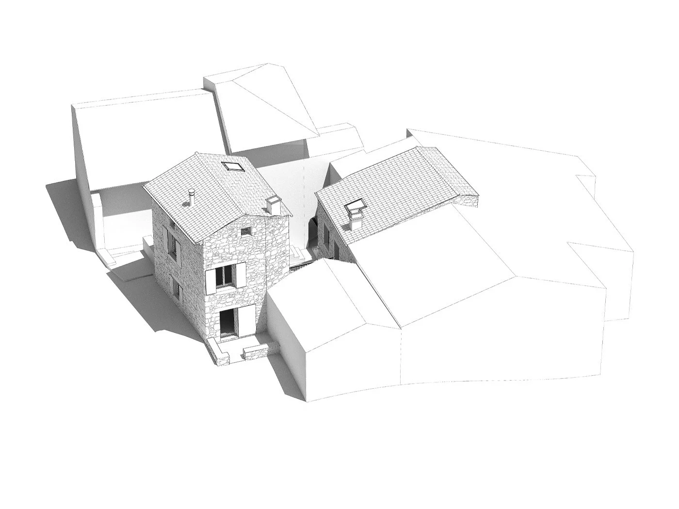 Le projet, situé à Ucel en Ardèche, vise à relier deux bâtiments du XIXe siècle et à construire une extension en bordure de parcelle.